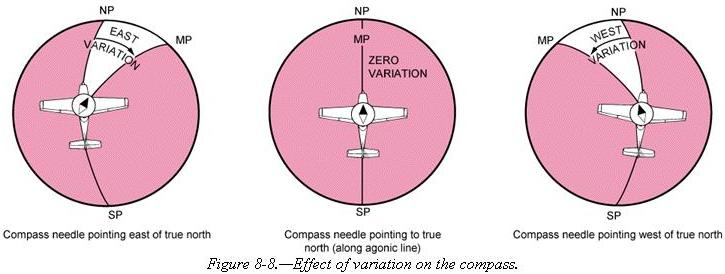 magnetic north. On easterly or westerly headings, however, the compass