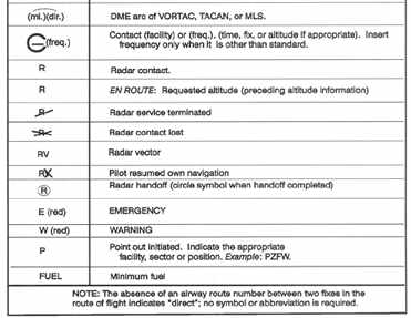 aircraft. 16. Arrows to indicate if aircraft is departing () or